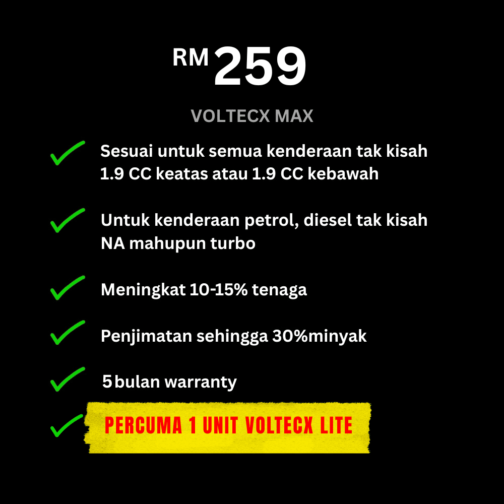 VoltecX – Boleh digunakan pada kereta yang mempunyai 1.9 cc kebawah sahaja.